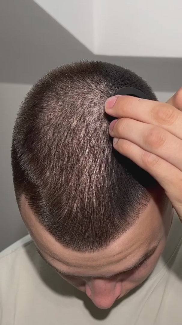 Neredeyse imkânsız — sen söylemedikçe kimse fark etmez. Saçlarınla doğal şekilde bütünleşir; güçlü ışık altında ya da yakından bakıldığında bile görünmez. Gerçek saç kalınlığını birebir taklit eder — pudra izi yok, yapay parlama yok. Çoğu durumda, bir şey uyguladığını kimse anlamaz.